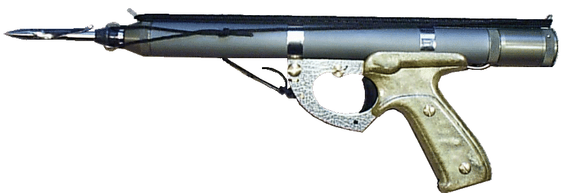 Это снаряжение посылает снаряд в цель путем воздействия сжатым воздухом, находящимся в особом резервуаре. Такие ружья отличаются большой точностью, хорошей плавучестью и плавным спуском, что уменьшает отдачу.