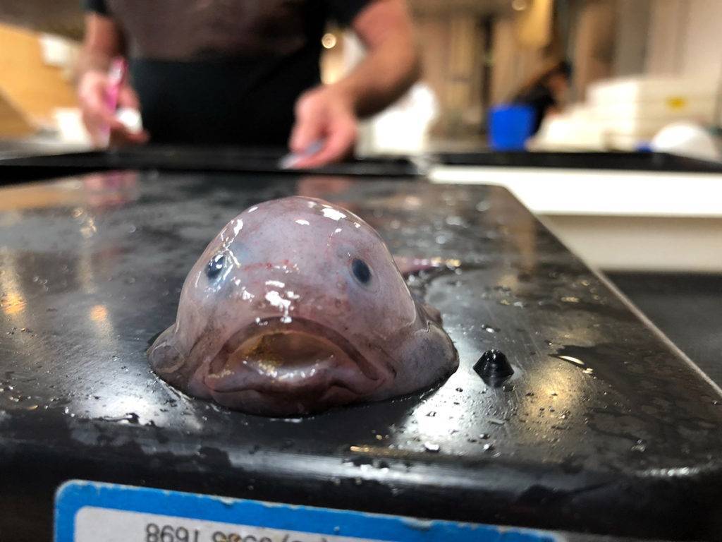 Выловленное существо похоже на капельку коричневого или розового цвета без чешуи, состоящую из желе. Длина тела редко превышает 30 см, вес до 2 кг.
