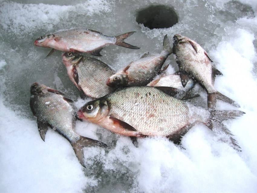 Для ловли леща зимой со льда рыбаки используют поплавочные удочки и различные мормышки.