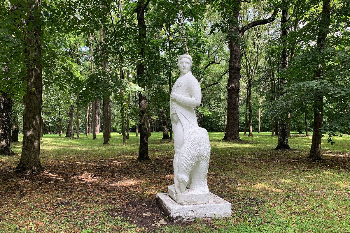 Известно, что граф Николай Петрович Шереметьев страстно увлекался театром и построил свой собственный на территории усадьбы. Вот и скульптурный парк, разбитый в 2004 году, отвечает театральной тематике здешних мест. Расположившиеся вдоль аллеи статуи изображают суфлера и шута, Трагедию и королеву. Среди них, конечно же, есть и памятник самому графу.