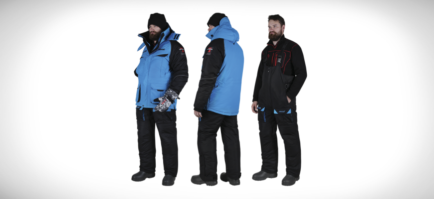Мужской зимний костюм для рыбалки, выдерживающий температуры до -40 °С. Состоит из водонепроницаемой куртки и полукомбинезона. Предлагается в комбинированной расцветке — красное и чёрное. Имеются светоотражающие элементы.