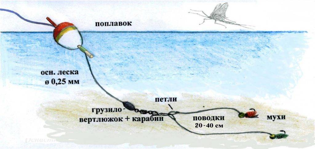 ВАЖНО! Не нужно при выполнении оснастки использовать карабины, и иные металлические составляющие, которые позволяют быстро осуществлять смену приманки. Связано это с тем, что наличие лишних элементов придает снасти грубость, что не приемлемо в ловле хариуса