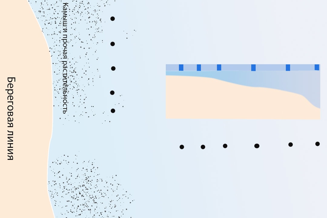 - Если дно водоема ровное, без явных перепадов глубин, то поиск рыбы значительно осложняется.