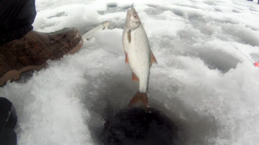 Видео с удачными кадрами поимки сорожек на мормушку: