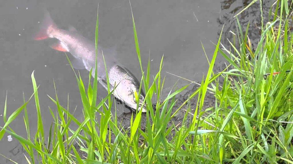 - Посленерестовый – этот пик активности тайменя приходится на начало и середину июня. Отнерестившийся хищник в это время постепенно скатывается вниз по течению на летние стоянки – плесы, ямы, участки ниже порогов и перекатов. Чтобы восполнить потраченные на нерест питательные вещества, хищник начинает активно кормиться. Прекращается этот пик с наступлением летнего зноя в начале и середине июля.
