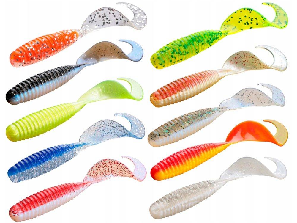 Диапазон размеров «резины» широк, он простирается от мини-приманки длиной 2 см до твистера длиной более 25 см.