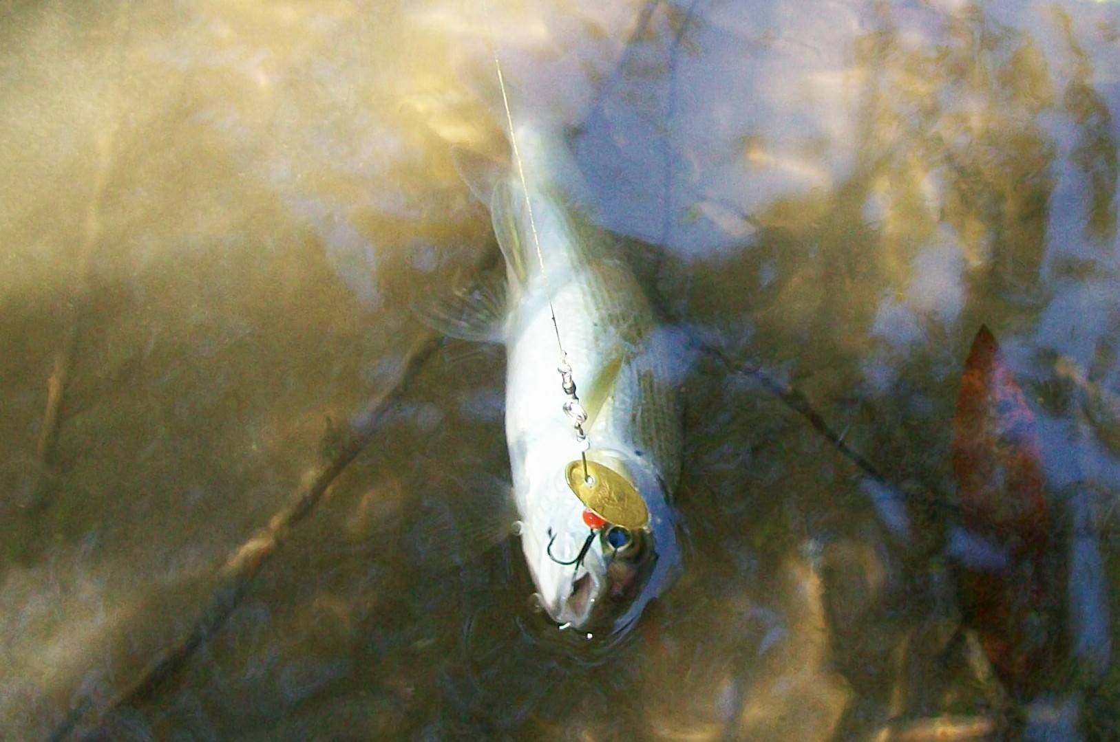 Немного предыстории: Около семи лет назад, я очень увлекся спиннингом – ловил щуку и окуня, но загвоздка была в том, что за ними приходилось куда-то ехать, в домашних водоемах их, к сожалению, не водилось. Но ездить получалось не всегда, и я начал искать варианты, и нашел! В той речке, что протекала неподалеку от моего дома, водился хариус, которого я до этого ловил на поплавочку. После того, как я начитался статей и насмотрелся видео про ловлю хариуса, я решил попробовать половить его на своей речке, но ни в первый, ни во второй раз ничего не поймал. Хариус почти полностью игнорировал окуневую вертушку, лишь изредка провожал ее до берега. Но я не сдавался и заметил, что чем меньше вертушка, тем больше она интересна хариусу. В следующий раз я уже был вооружен несколькими блесенками размера 00 – 0, и все-таки вымучил одного небольшого хариуса на блесну Mosca 0! С вертушками размера 00 у меня как-то не сложилось. Они очень плохо заводились, все таки снасть была грубоватая, а вот «нули» неплохо работали и хариус на них активно реагировал. Я начал экспериментировать, чтобы найти ту самую ловчую блесну, и нашел! Ей оказалась вертушка от французской фирмы Mepps, называлась она XD, размера №0. Особенность этой блесны в том, что она выполнена в стиле ин-лайн, т.е. ось вертушки идет прямо через лепесток. Такая вертушка лучше заводится и вращение у нее более быстрое, даже на самой медленной проводке. Но в стандартном исполнении она слишком тяжелая и я ее немного усовершенствовал: груз убрал совсем, вместо него поставил несколько бусинок. Блесна получилась очень легкой, меньше грамма весом, но зато она мгновенно заводилась и вращалась даже при самой медленной проводке. И на эту блесну я начал ловить. Не много конечно, но 2-3 всегда попадалось. Забирать мне их было незачем, и по этой причине я их отпускал обратно.