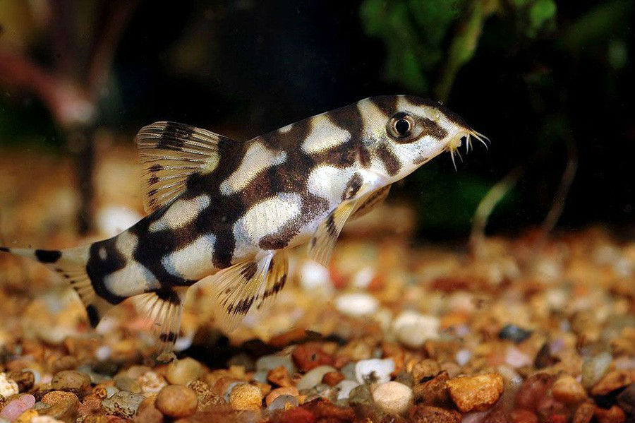 Она же боция шахматная. Длина — 10–12 см. Основной окрас — темно-серый с фиолетовым отливом со светлыми пятнами. Окрас плавников дублирует расцветку тела.