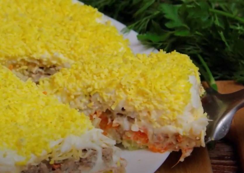 Классический рецепт салата «Мимоза» из тунца с рисом
