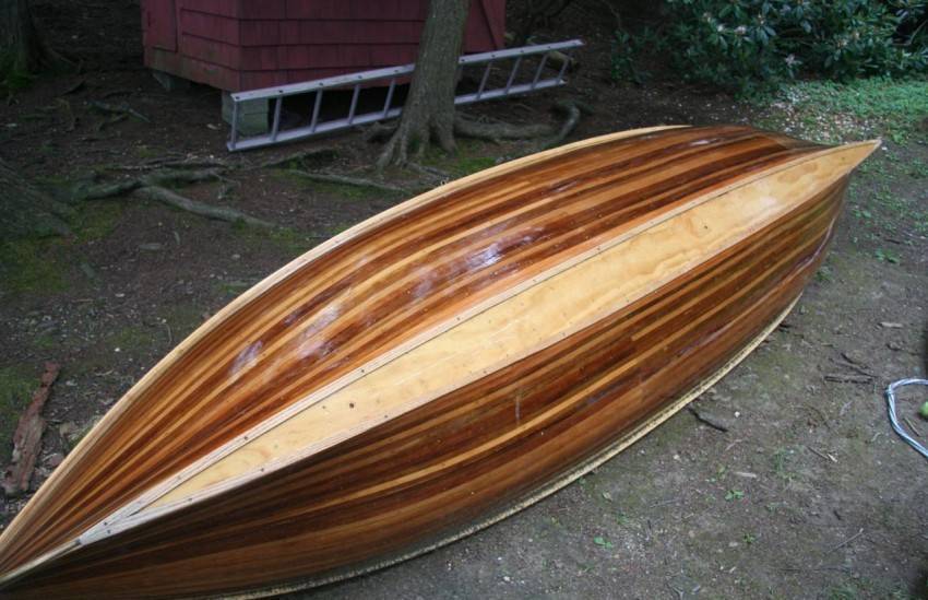 изготовленный из дерева киль сверху покрывается полиэфирной смолой;