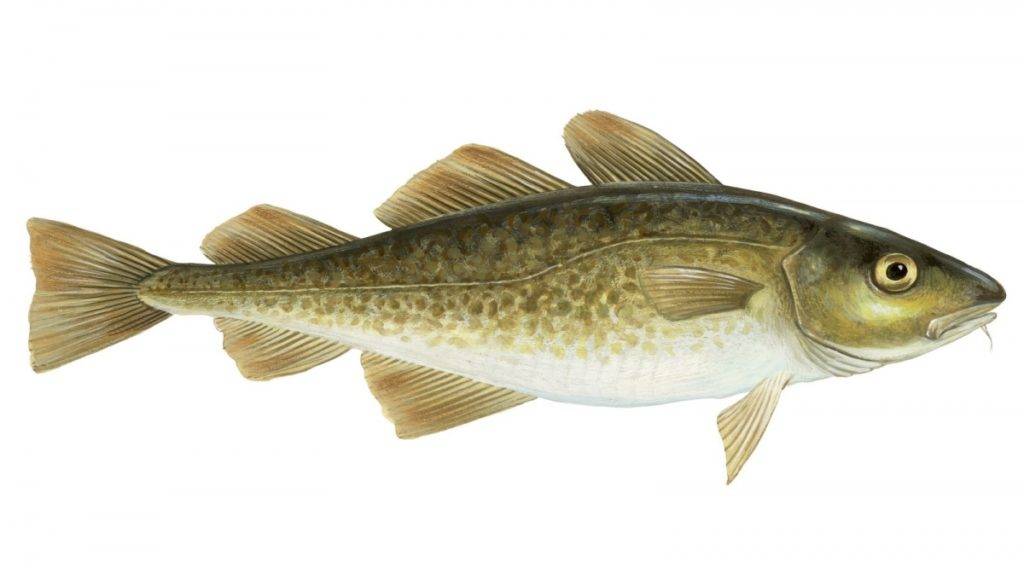 Треска. Донная рыба со светло-зеленым удлиненным телом, которая питается мелкими рыбешками. Отличается изобилием темных пятнышек на боках, спине, и более светлых на брюшке. Обладает плотным белым мясом, в котором много протеина и мало мышечных костей. Ценится своими питательными качествами и является хорошим сырьем для получения рыбьего жира.