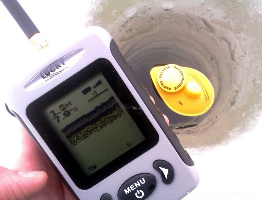 Беспроводной прибор сканирует акваторию под углом 40 градусов, при этом рабочий температурный режим составляет -20+70 градусов. Конструкция состоит из дисплея, излучателя, датчика и преобразователя. Эхолот «Фишфиндер» — это продвинутый современный аксессуар, который способен получать и отображать всевозможные данные о толще воды и численности рыбы в конкретной точке. Управление прибором осуществляется посредством нескольких клавиш и соответствующего меню на дисплее.