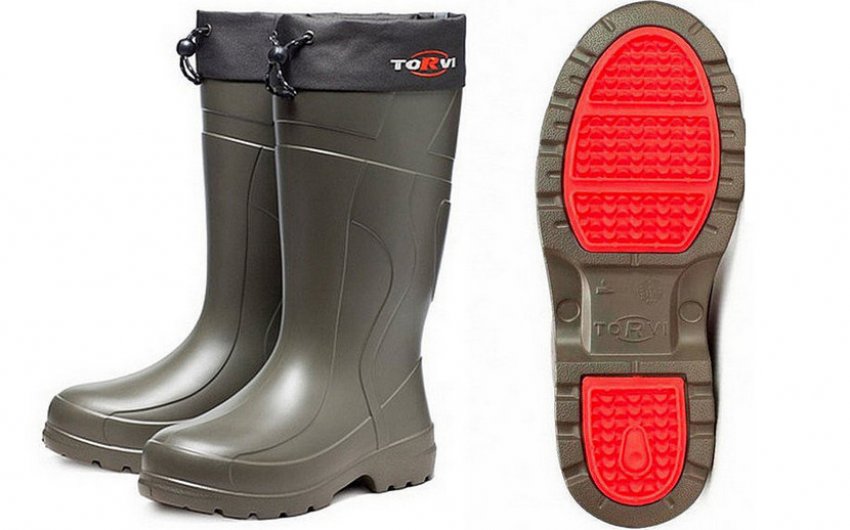 - Torvi. Сапоги российского производства изготавливаются из высококачественного ЭВА. Толстая подошва с глубоким протектором надежно защищает от скольжения. Сапоги прочные, водонепроницаемые, а 7-слойный вкладыш хорошо отводит влагу и сохраняет тепло.