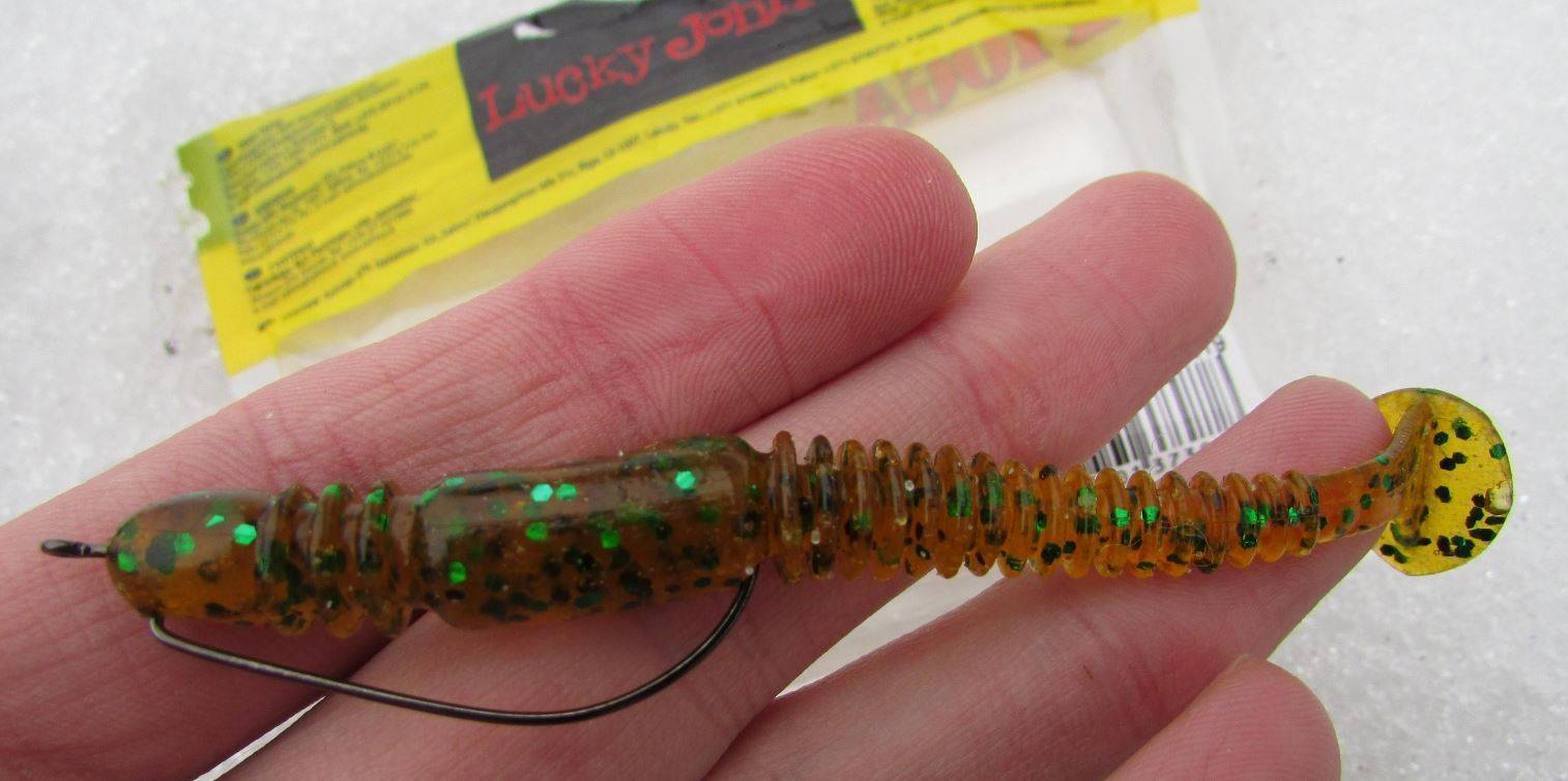 ЛакиДжон славится довольно мягким, податливым силиконом, который очень приятно пахнет и имеет солоноватый вкус. Все это позволяет долавливать, заводить рыбу, которая тыкается в приманку и не особо активна. Один тычок, второй, и уже на третий хищник, распробовав мягкую «съедобность», не выдерживает и заглатывает приманку полностью. Уверен, что рыбе очень нравится и консистенция, и запах этой резины.