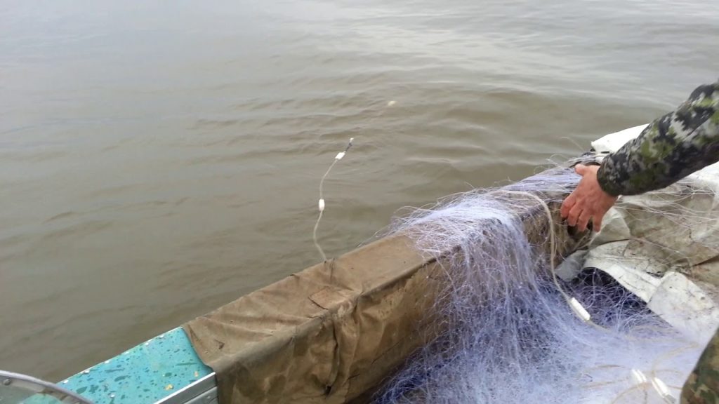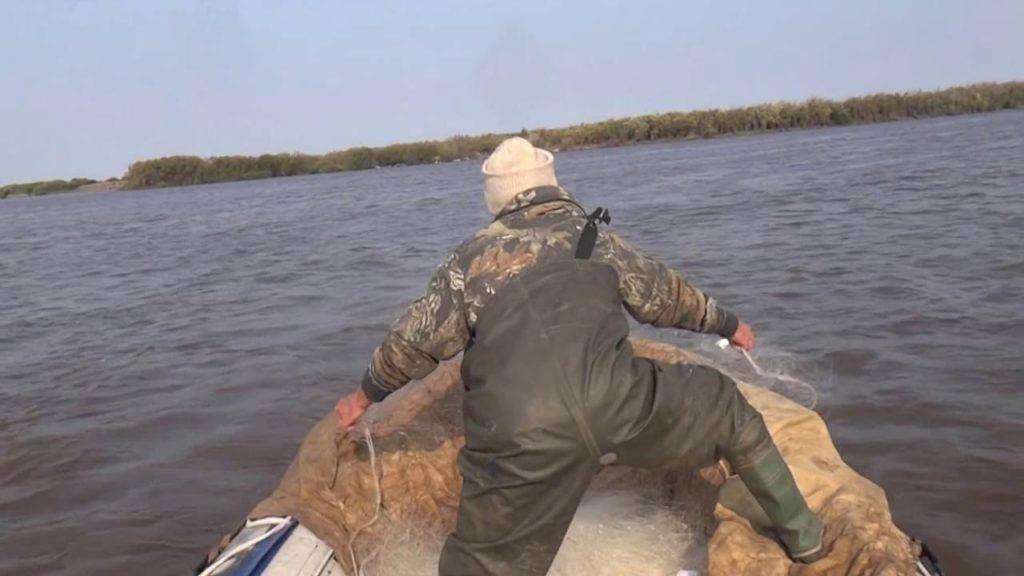 Безопаснее всего рыбачить среди нескольких лодок. Об этом речь пойдёт ниже. Ориентируясь на маяки, известные только им, рыбаки с запасом расстояния под сеть выезжают на открытую воду. Один садится за вёсла (греби в народе), а второй встаёт на нос лодки или корму для выброса снасти. Теперь тот, кто гребёт, направляет лодку к берегу, а другой расправляет сеть и опускает её аккуратно в воду.