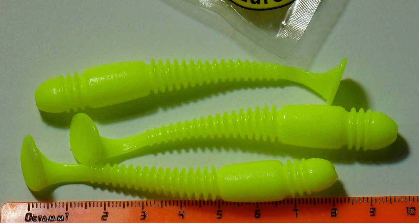 - размер 3,9″ (100 мм). Вес — 6,15 грамм. 5 шт. в упаковке. Приманка хороша для классического джига. Интересна для охоты за трофейными судаком и щукой.