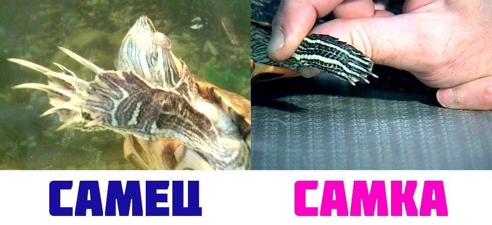Чтобы определить пол своей черепашки внимательно осмотрите их со всех сторон. У самцов более толстые и длинные когти на лапах, нежели у самок. В свою очередь, самки являются обладательницами изящных тоненьких, коротких хвостов. У самцов хвосты, наоборот, длинные и широкие у своего основания.