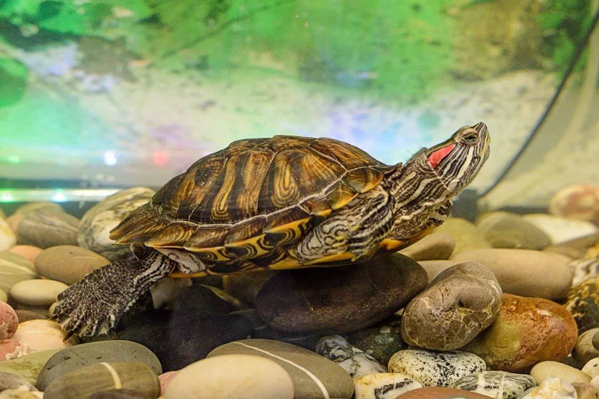 Привычные условия. Необходимо позаботиться, чтобы черепаха чувствовала себя как дома, где основное время она проводит не в воде, а на суше. Для этого посередине нужно оборудовать небольшой островок из качественного оргстекла с выемками, которые обеспечат черепахе удобство и комфорт при выныривании на него. Подойдет также подстилка из мха, песка, водорослей или из другого материала, который не будет лишний раз делать воду мутной