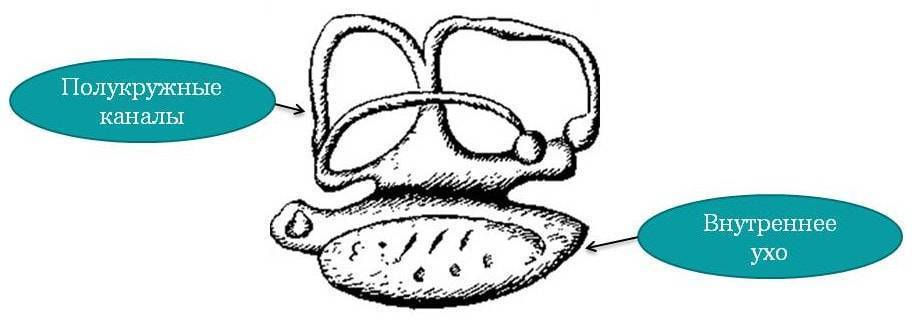 органа равновесия, нижняя часть лабиринта воспринимает звуки. Любое изменение положения головы вызывает