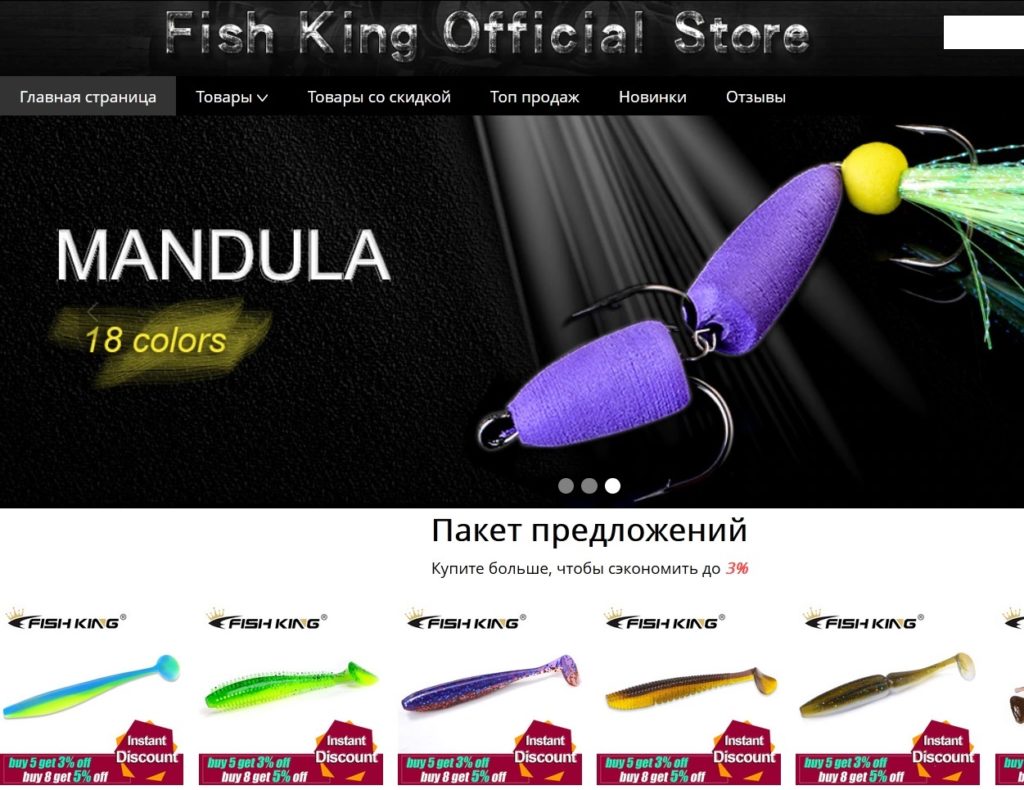Продукция этого известного производителя очень часто встречается в магазинах, посвященных рыбалке. Изделия прочно завоевали популярность как любителей рыбной ловли, так и профессионалов. FISH KING Official Store является официальным магазином, предоставляющим своим покупателям всю продукцию популярного бренда. Стоит отметить, что стоимость изделий здесь зачастую меньшая, по сравнению с дистрибьюторами.