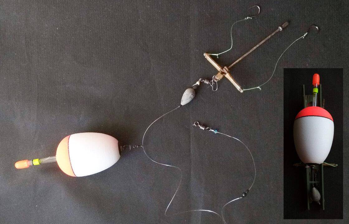 Если вы посмотрите на схематические изображения ниже, то будет видно, что различия между ними минимальны: донный вариант оснащается дополнительным грузилом, а поплавочный, собственно, самим поплавком и скользящим грузом на основной леске. Готовые комплекты можно найти в рыболовных магазинах или изготовить самостоятельно.