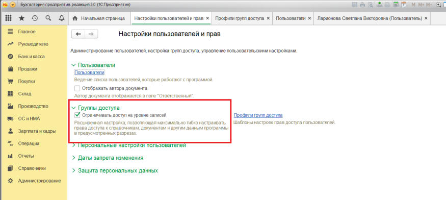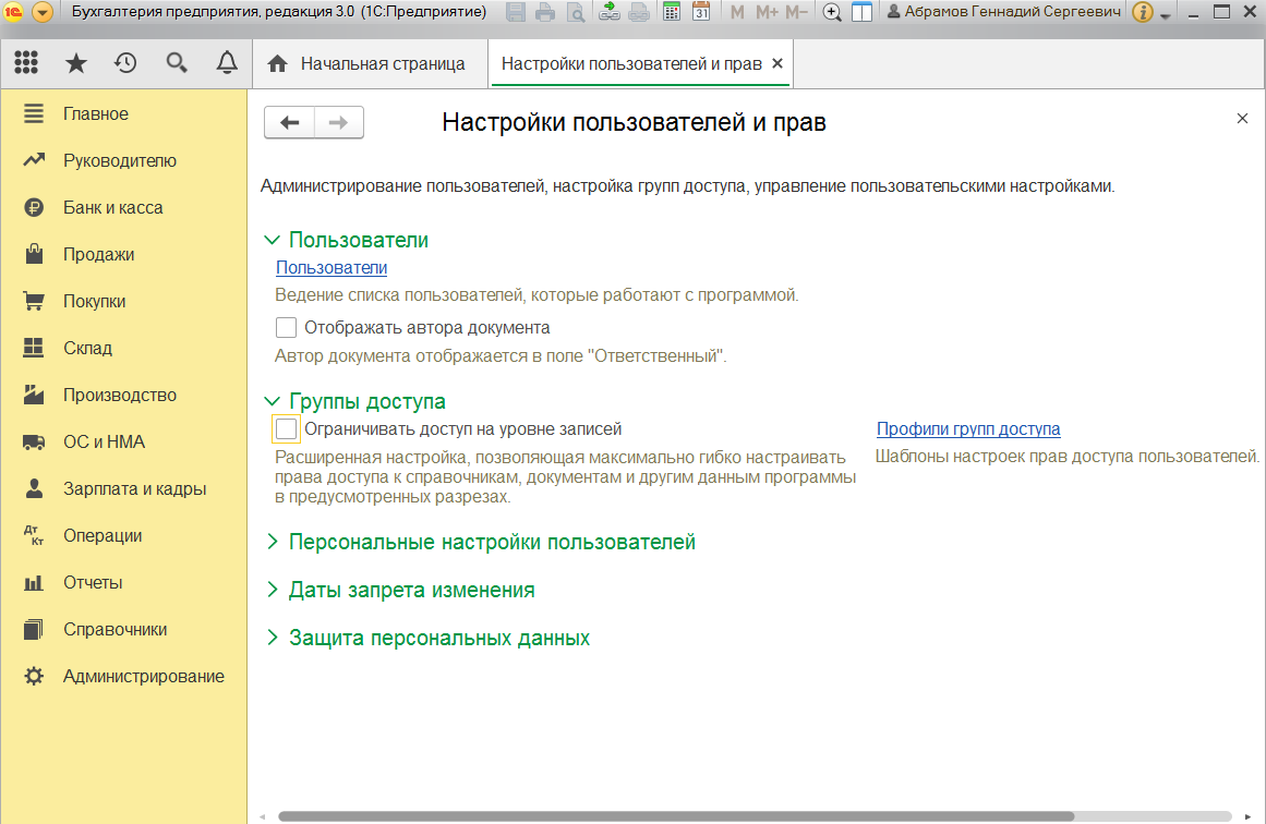 Расскажем, как настроить права доступа на примере программы «1С:Бухгалтерия 8 редакция 3.0»