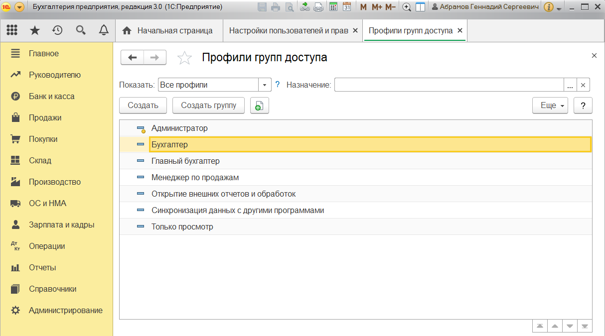 Однако обратите внимание, что аналогичным образом настраиваются права доступа для пользователей и в других программных продуктах 1С. Например, инструкция также подойдет к «1С:Управление торговлей», «1С:Зарплата и управление персоналом», «1С:ERP» и другим ПП.