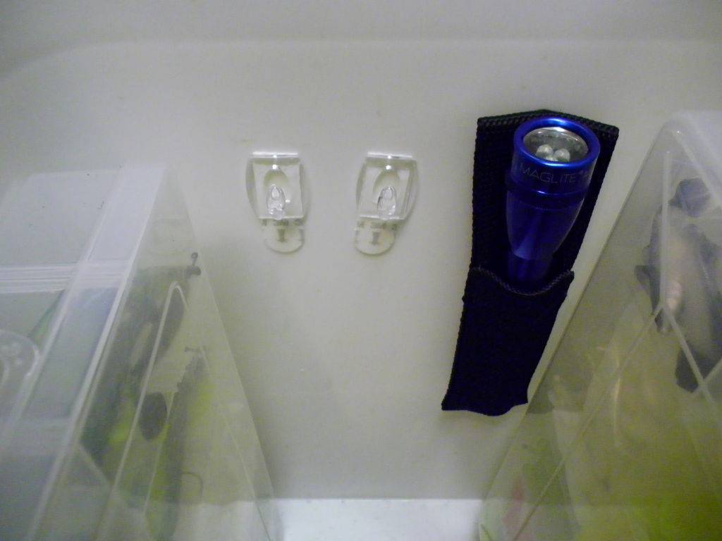 Для ножа и фонарика я использовал липучки-точки. Я поместил точки сверху и внизу ящика с инструментами, а затем разместил их на инструментах так же, как я сделал это с коробками для снастей. Таким образом, ящики для инструментов не изменяются физически, и при желании вы можете повесить их на своем поясе.