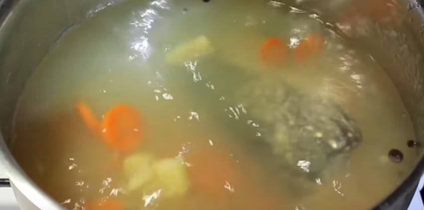 Прежде чем закинуть головы вариться, нужно их почистить. Для этого удалим жабры, можно убрать даже глаза. Затем в глубокую кастрюлю наливаем воды, помещаем туда головы и ставим вариться. За бульоном нужно внимательно следить. Если Вы видите,что появляется пенка, обязательно ее снимайте в отдельную мисочку.