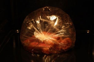 - Поместить в холодную духовку, включить 200 градусов и запекать сорок минут.