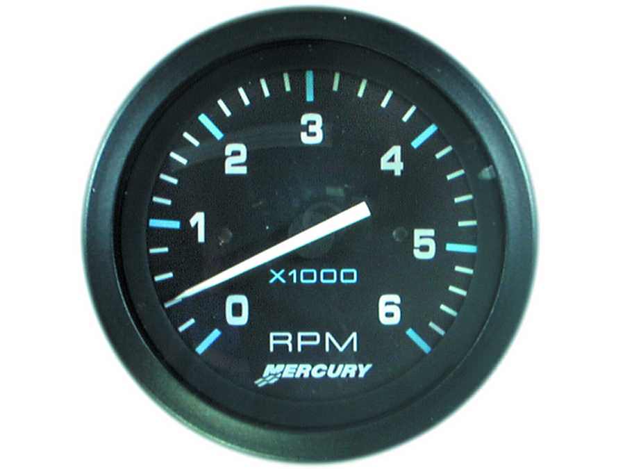 Тахометр Mercury Flagship аналогового типа (0−8 тыс. об/мин) может быть установлен на любые разновидности моторов Mercuri. Корпус устройства устойчив к влаге, оснащен не запотевающим стеклом и стрелочным циферблатом. Цена аналогового тахометра — 5600 р.