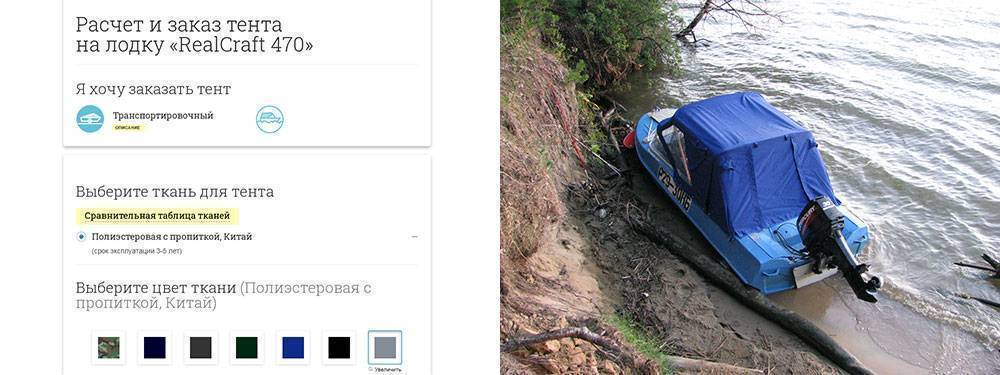 Но как же я расстроился, когда увидел, что никакого выбора ткани на транспортировочный тент они не предлагают. Хотя при выборе, допустим, на Обяху ходового тента был выбор более или менее нормальной ткани.