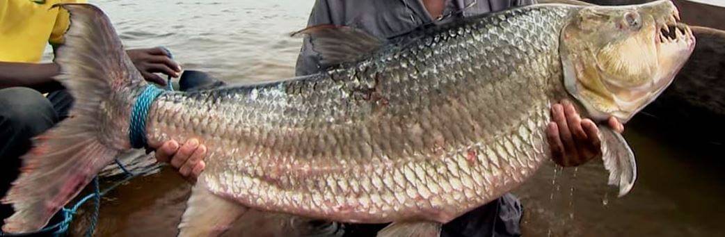В крупнейшей реке Центральной Африки Конго обитает около 700 видов всевозможных рыб. Некоторые из этих речных обитателей являются довольно хищными особями, способными нести угрозу не только своим речным сородичам, но и человеку. Тигровая рыба Голиаф (Hydrocynus goliath) — представитель именно такого вида хищных рыб. Этот «речной монстр», достигающий в длину до полутора метров при весе более 50 кг, вооружен набором из 32-х крупных и острых зубов, по своей форме напоминающих клыки.