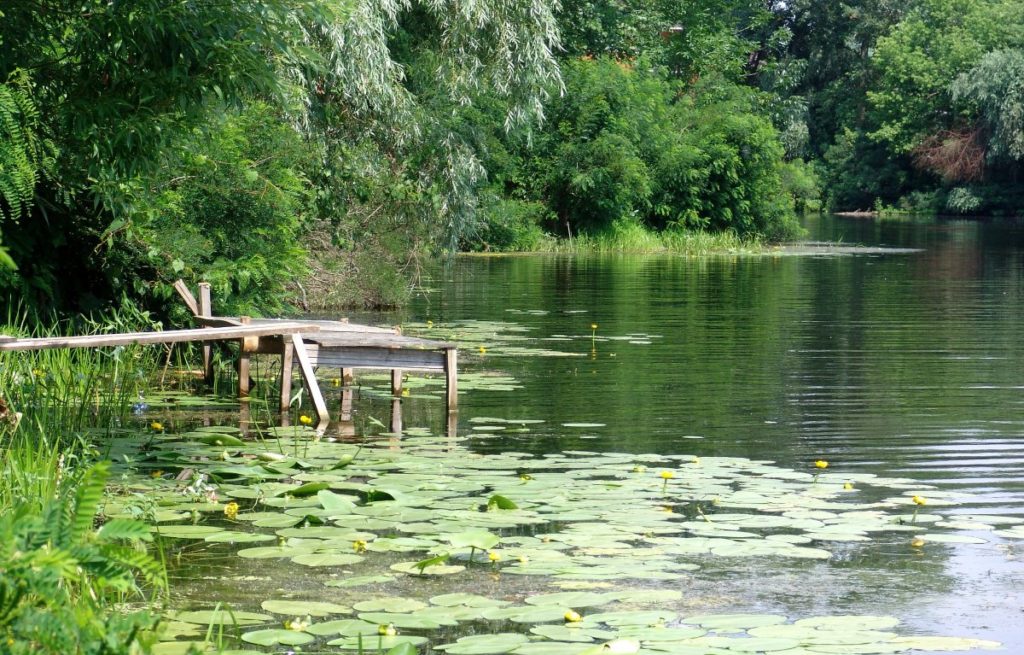 - Любые окна чистой воды среди зарослей, места у затопленных кустов, поваленных деревьев, участки с ровным течением, поросшие кувшинками – подходят для поплавочной рыбалки на карася.