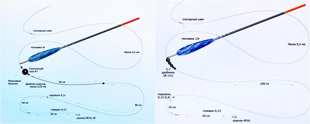 - скользящая по виду более продвинутая за счет свободного передвижения поплавка по леске в зависимости от глубины участка ловли. Минусом является снижение чувствительности, но опытные рыболовы успешно настраивают снасть без потерь эффективности охоты.