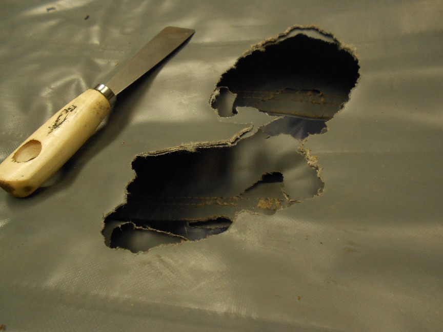 Порезы. Порезать ткань ПВХ можно любым режущим инструментом, не только умышленно, но и даже при неправильном хранении плавсредства либо его транспортировке.
