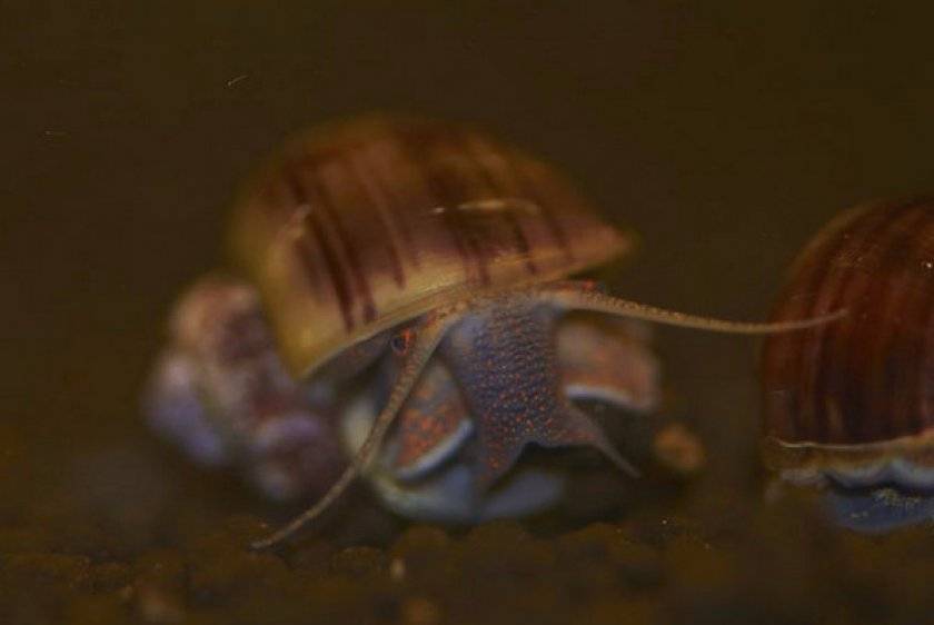Если брюхоногий моллюск выползает из воды слишком часто и очень активно, то это может быть свидетельством недостаточно качественной среды обитания. В этом случае нужно срочно произвести замену воды в аквариуме.
