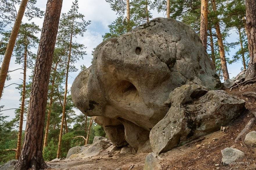 На картах OpenStreetMap и Wikimapia отмечены два интересных объекта — это камень Кобра и грот Черепашка. Есть множество и других интересных камней по размерам и формам, но эти были отмечены, и мы проверили их, координаты почти сходятся. Первым делом после общего осмотра центральной части мы направились к камню Кобра.