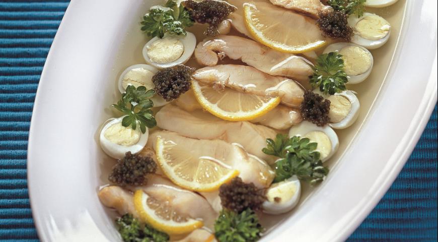 Террин – традиционное блюдо французской кухни. Нечто среднее между русским холодцом и немецким зельцем. Лучшая рыба для заливного по-французски: карп, судак, форель. Интересный вариант со сметаной готовится в течение часа.