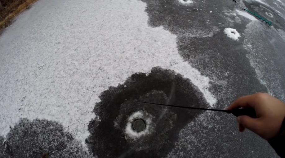 Проволоком. Для ловли данным методом необходимо сделать широкую лунку. Суть всей проводки заключается в том, что мы плавно перемещаем удилище от одного края лунки к другому, вслед за удилищем по дну передвигается и наша приманка, в процессе такой проводки необходимо производить аккуратные подергивания приманкой.