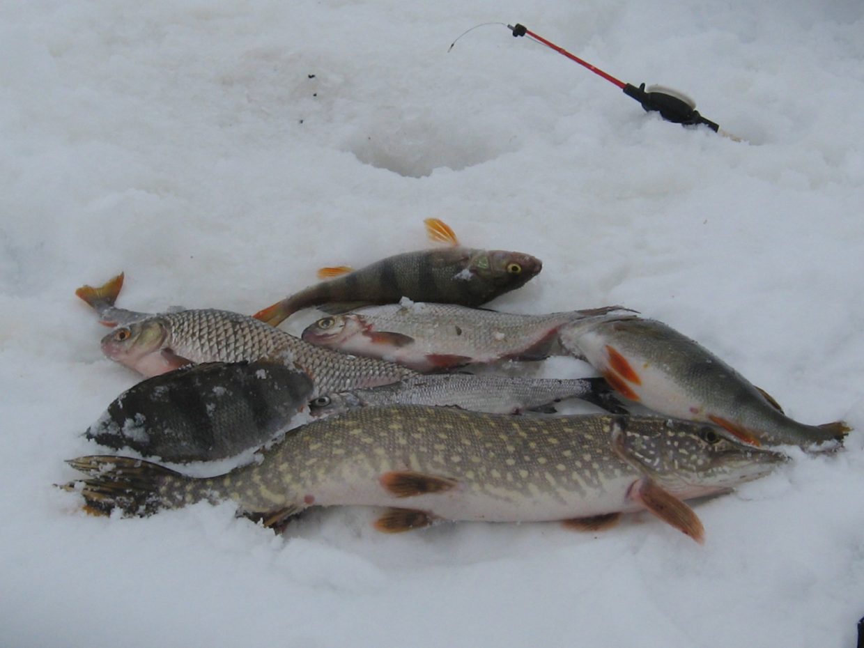 Спроси рыболова-зимника, какая добыча является основной в морозы и холода? Он ответит — окунь. Фактически любой водоем на территории России кишит ею. В холода рыба уходит на глубину — прячется стаями в ямах. Если найти убежище стаи, то можно в течение получаса стать обладателем небывалого улова. А потому опытные рыбаки рекомендуют заходить подальше и бить не одну лунку. И поскольку ловля будет глубоководной, то снасти для зимней рыбалки необходимо подготовить соответствующие. Также профи рекомендуют использовать сигнализаторы поклевки, ведь распознать добычу в зимних условиях будет очень сложно: не видно пузырьков, качания водной глади, всплесков. Может встретиться плотва, щука и лещик.