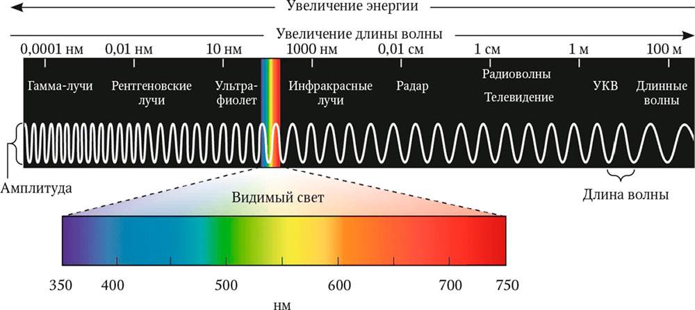 Посмотрите на световой спектр, станет понятно, что “теплые” цвета имеют большую длинну волны и несут меньшую энергию, соответственно волна излучаемая ими быстрее затухает в плотной среде.